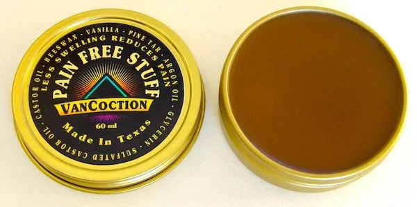 PAIN FREE STUFF also contains vanilla, and pine tar. The word vanilloid comes from the word vanilla. Vanilloids, properties of Vanilla, are known to slow the immune system’s overproduction of infection-fighting substances.